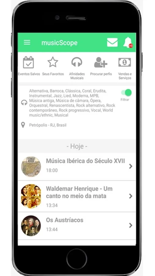 Everything a musician needs it's here on musicScope. You will know the events that happen in your city. If you are a musician you can create a profile for yourself and, within your account, a profile for your musical group and show your work, your projects, your events and so much more!