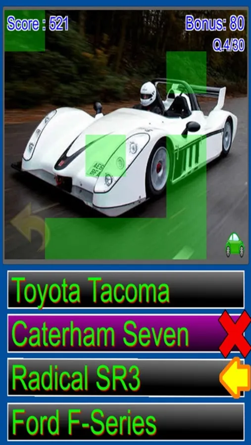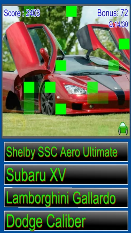Cars are revealed slowly square by square, simply select the correct car from the choices given - guess early for extra bonus points.