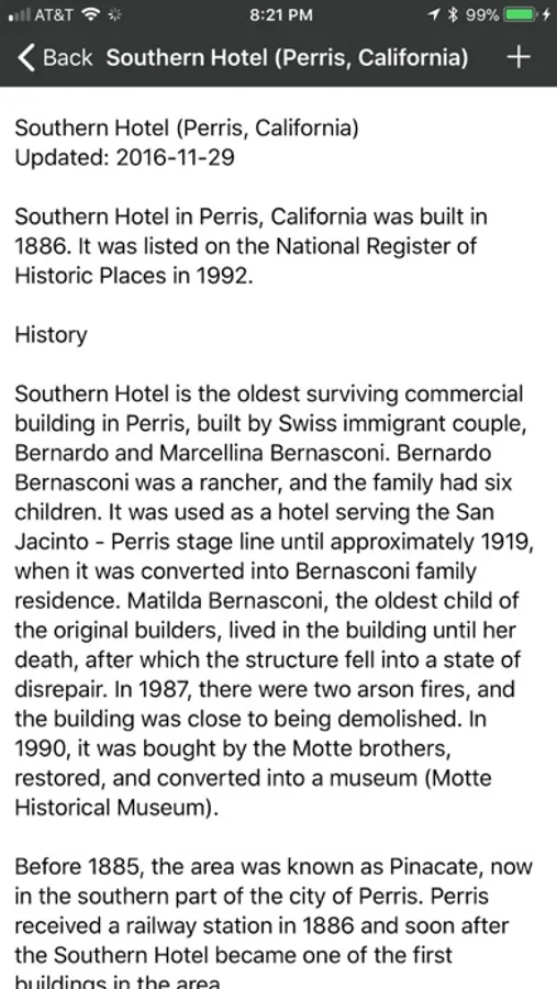 Offline Capabilities: Wikipedia article text, list of nearby historical places and offline maps.