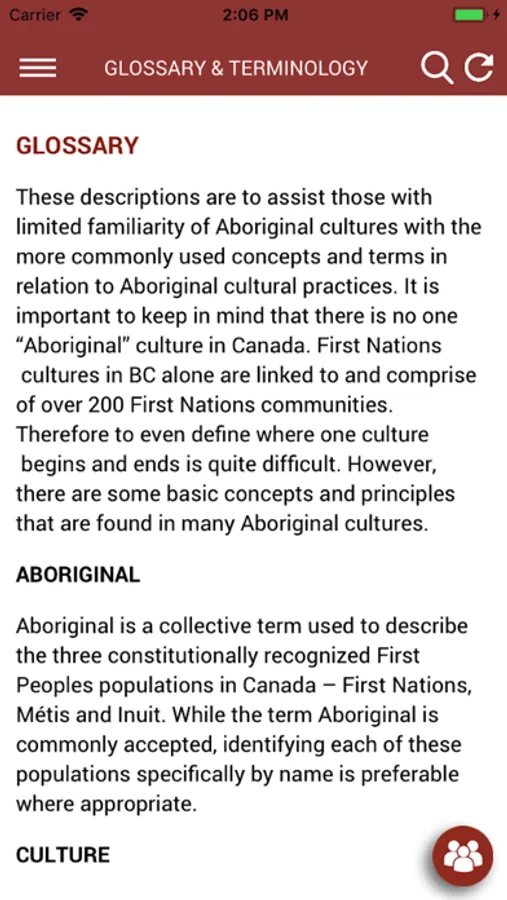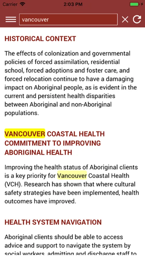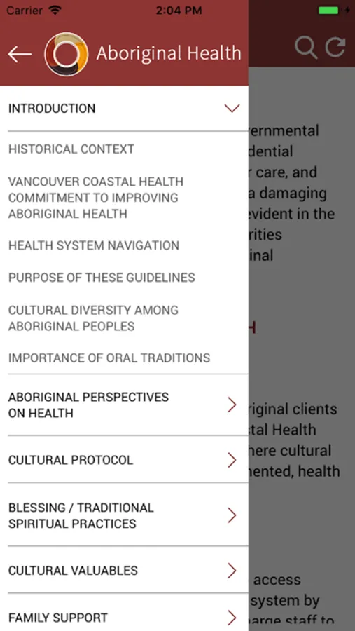 The Aboriginal Cultural Practices App for Health Care Professionals is a free, iOS app developed to support health care staff to provide culturally responsive care services for Aboriginal patients. Created in partnership with local First Nation communities in the Vancouver region, the app gives access to cultural guidelines that aim to help health care staff understand and work with Aboriginal health practices and beliefs.