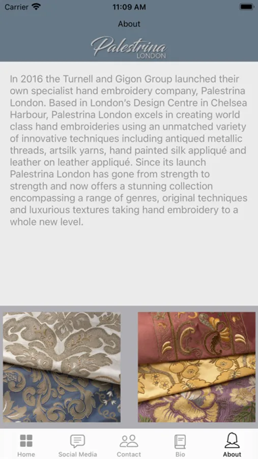 This App does not require an internet connection to function unless you intend to contact us or use social media. It allows the user to browse our unique hand embroidered textile designs in a quick and efficient way when meeting with clients or designing projects.
