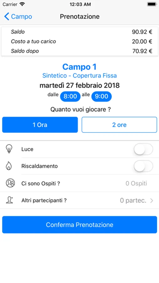 App giocatore per l'interfacciamento con il sistema EIS per la prenotazione di campi sportivi.