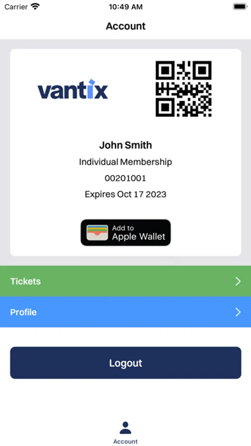 Say goodbye to old plastic membership cards and paper tickets! The Vantix Digital Membership app provides a convenient way to access your digital membership card and event tickets for organizations that use Vantix Ticketing Software, all in one place. With the Vantix Digital Membership app, you can spend less time worrying about event entry and more time enjoying the event.
