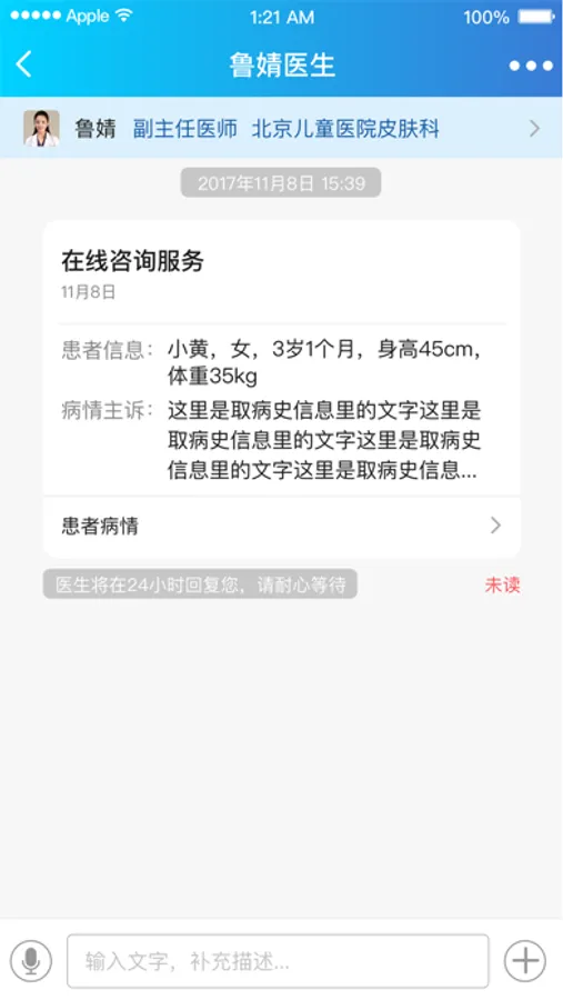 小苹果昆育互联网医院 患者版语音咨询、病史录入、拍摄照片、申请处方、分享、医生回访、门诊预约、关注医生、消息通知、收听语音等功能帮助大家了解自己的身体状况。