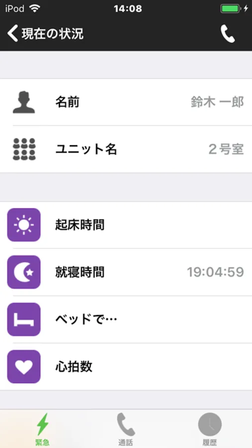 ・緊急通知ボタンを触るとスマホにアラートを送信します。