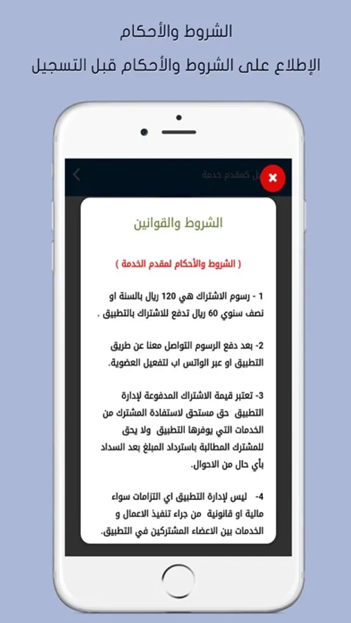 5 – يتم قراءة الشروط والاحكام قبل التسجيل.