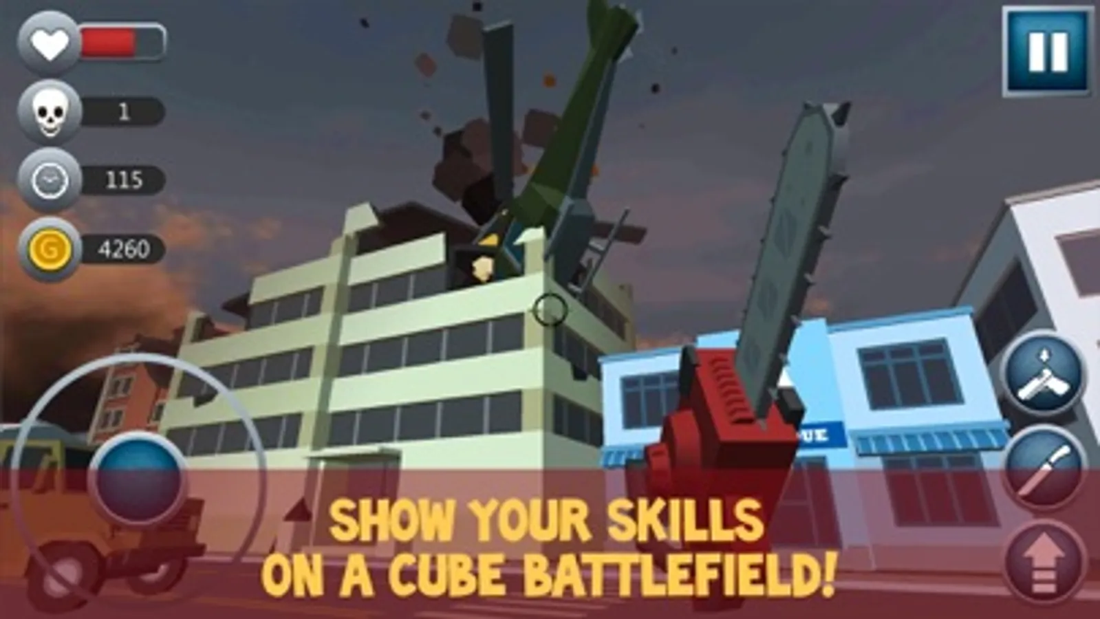 You just spawned here, at this cube location, you saw some strange people and tried to talk with them, but… They have weapons! Run and find your own knife or mini gun and fight with all these guys! Search for your personal weapon, ‘cause it can be absolutely everywhere! Just pick your weapon up from the ground and be ready to maneuver between different objects!