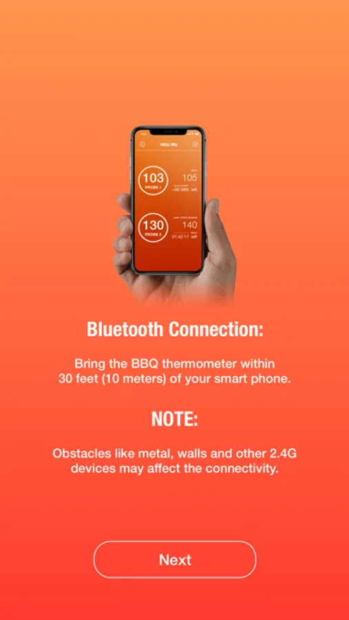 The Grill BBQ App supports the smart Bluetooth wireless thermometer.