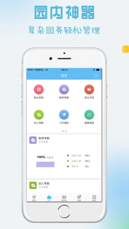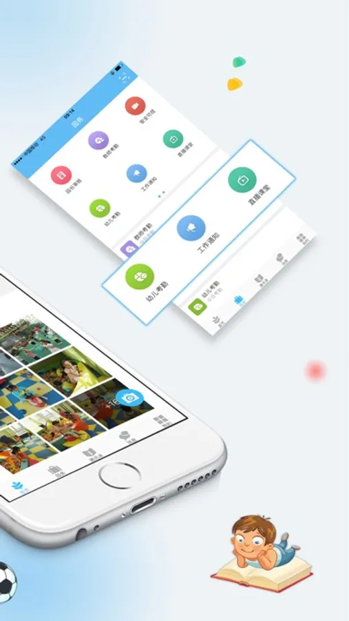 1、通讯录:关联园所通讯录、成员实名制,保证园所内部沟通的信息安全,一键发起电话,简单易操作,让沟通更简单。