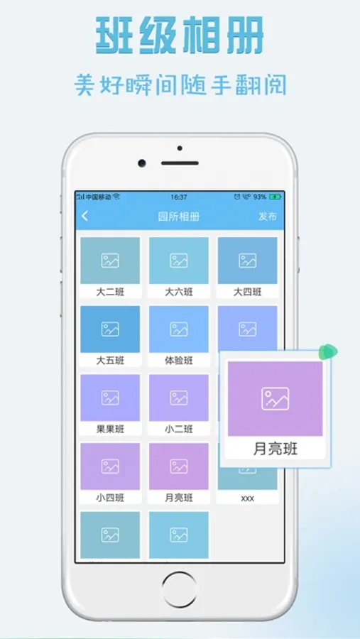 2、班级相册:实时同步教师、家长发布在班级圈的图片视频,并根据用户行为贴上标签,方便教师一键生成成长档案。