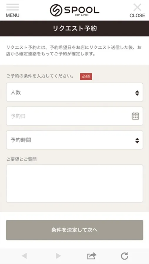ご希望の日時やメニューを指定して送信するだけで予約を依頼できます。