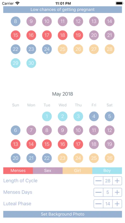 "My Days" app helps you track your period cycle with desired goals: getting pregnant, conceiving boy or girl, or having safe sex.