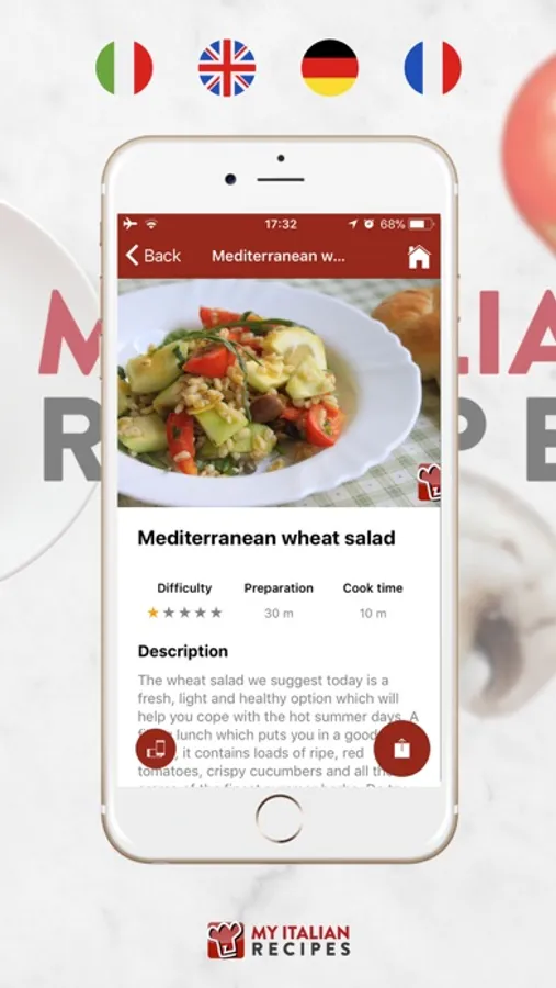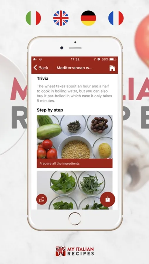 You can download this app on your shartphone or tablet. Open it, browse it and use it while you cook: all the recipes are so easy to follow! Browse the App searching some recipes by name or by category. Don't forget that our Apps are completely Ads free. If you like this specific App, click up left and download the others of our series.