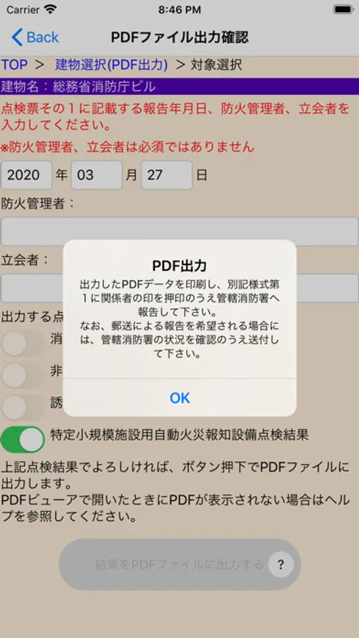 ・本アプリは、消防法令により義務付けられた消防用設備等の定期的な点検や消防署等への報告様式の作成を支援するアプリです。