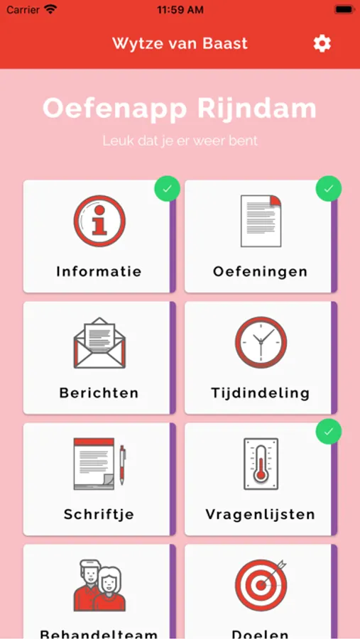 Met behulp van deze app kunt u thuis oefeningen uitvoeren en contact opnemen met uw behandelaren. We heten u hartelijk welkom, zowel via dit portaal als ook op ons behandelcentrum.