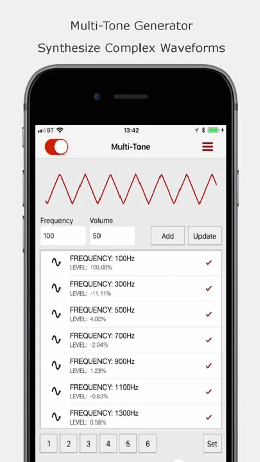 •Sine, Square, Saw, Triangle, Sweep and MultiTone options.