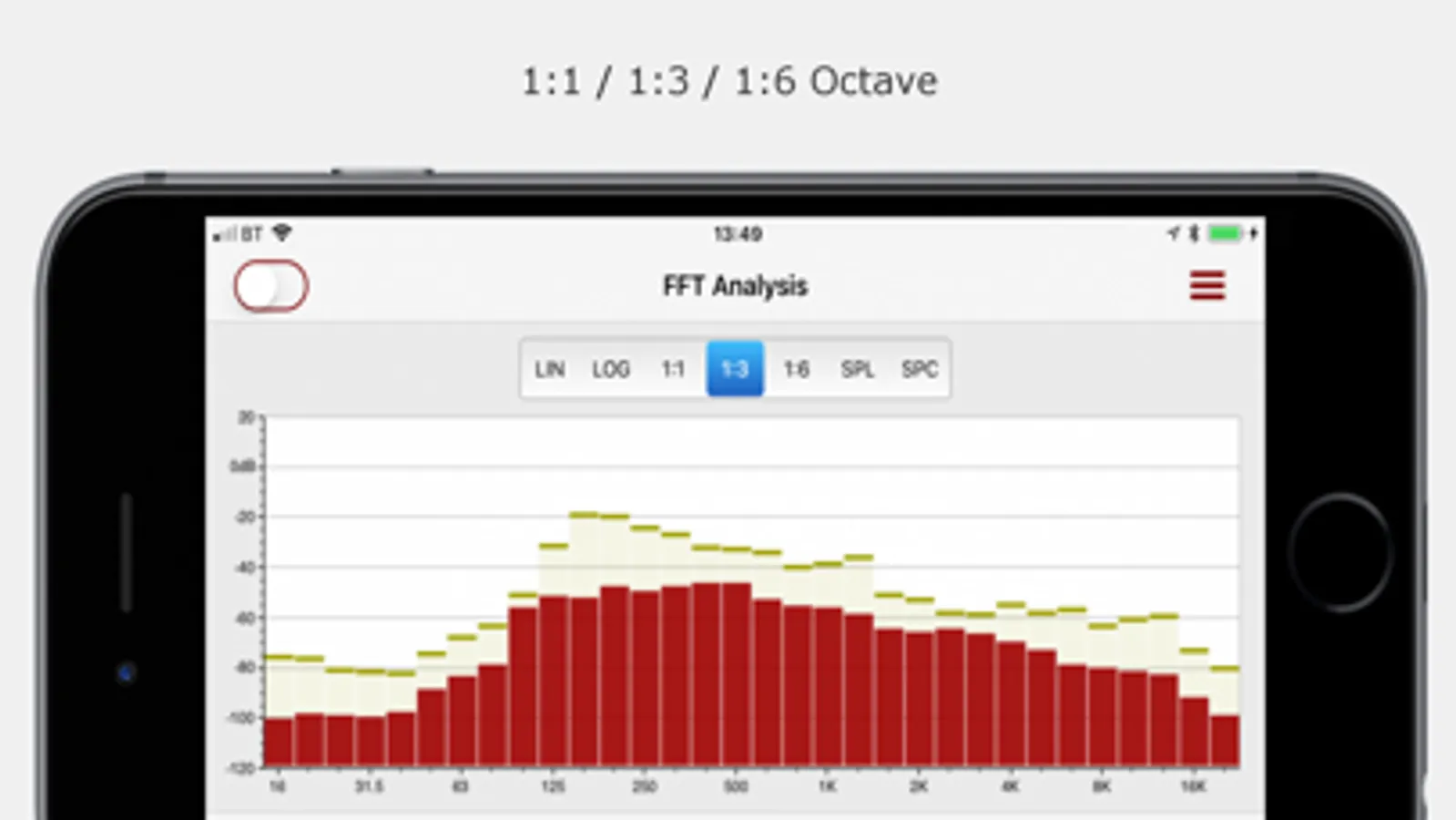 •1:1, 1:3 and 1:6 octave display modes.