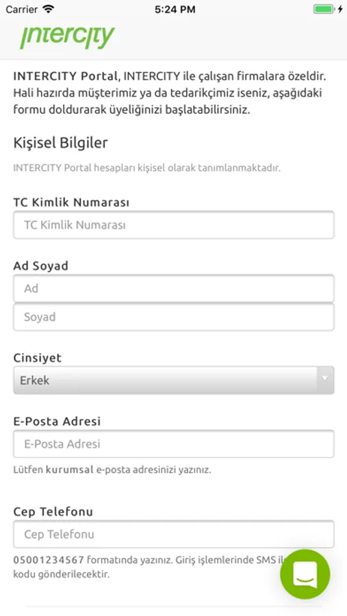 Intercity Portal uygulaması ile;