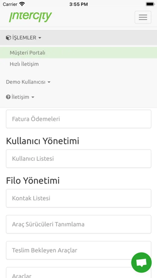 Uygulamaya girdikten sonra, sürücülerinizin uygulamayı etkin kullanabilmesi için ilk adım olarak, lütfen tüm kullanıcılarınızı "Kontak Listesi" > "Davet Et" adımından Intercity Portal uygulamasına davet ediniz.