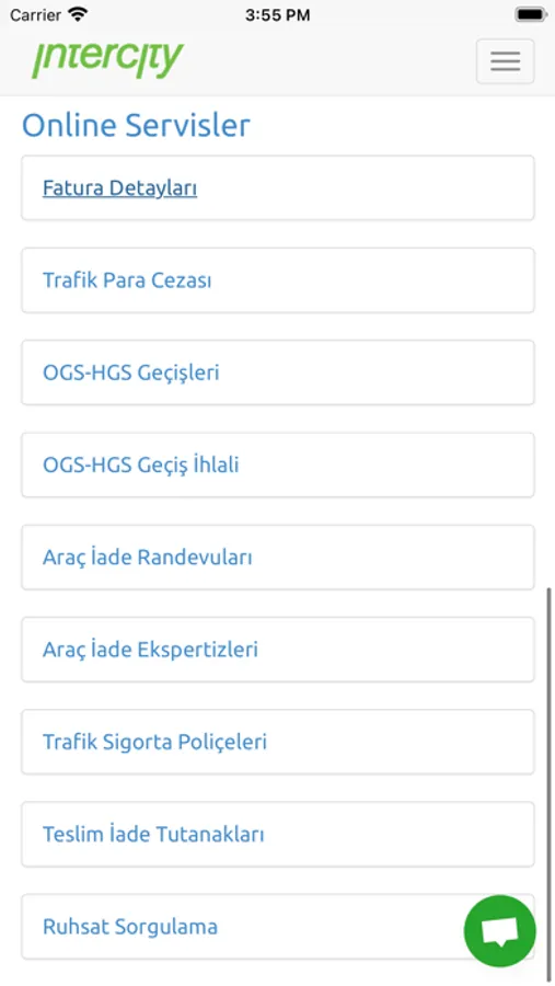 Intercity'den aldığınız hizmetlerle veya aracınız ile ilgili her konuda iletişim sekmesinden bize ulaşabilirsiniz.