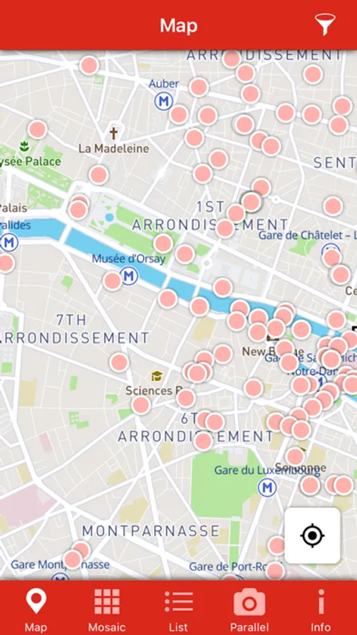 This application was developed to enable a more personal discovery of the Museum's collections through the streets of the city. It enables users to find almost 300 emblematic works from the Museum, re-positioned in the Parisian landscape. It offers plenty of opportunities to discover the works in the places that inspired them, along with the story of Paris and the Parisians behind them.