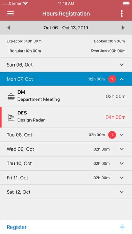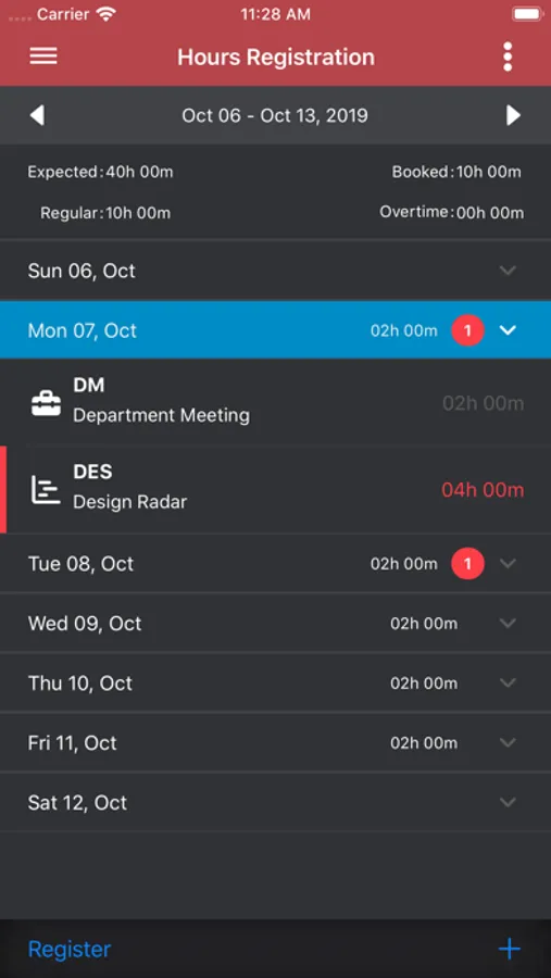 User will be shown only those origins which are relevant to User’s work. User will be able to differentiate between Regular and Overtime hours.