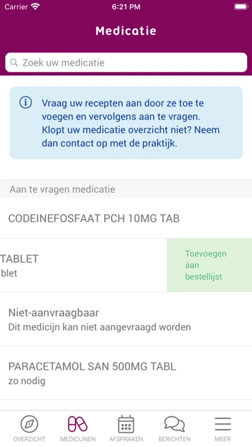 • Inzage in uw actuele medicatieprofiel zoals bekend bij uw huisarts.