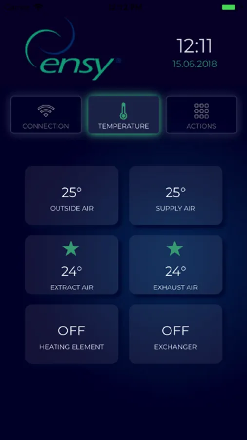 Ensy app allows users to remote control their AHU's and set temperature, fans speed or party mode on the unit. Or read the temperatures that are at the location of the unit.