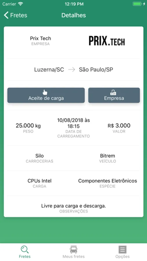 Os caminhoneiros através do aplicativo poderão colocar seus veículos à disposição tendo como ponto forte a praticidade e comodidade.