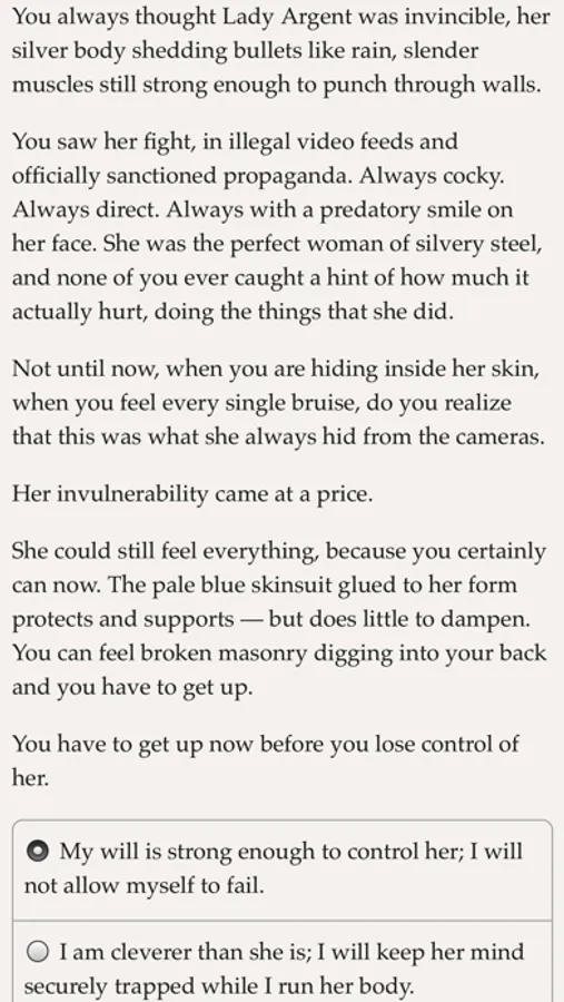 "Fallen Hero: Rebirth" is a 380,000 word interactive novel by Malin Rydén, where your choices control the story. It's entirely text-based—without graphics or sound effects—and fueled by the vast, unstoppable power of your imagination.