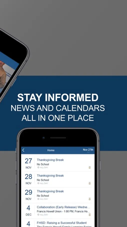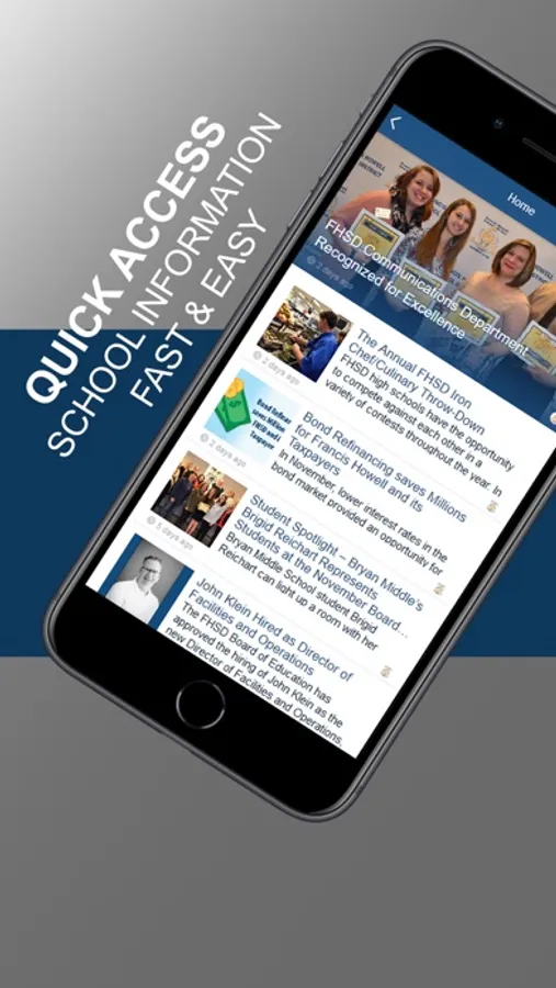 With the Francis Howell School District mobile app, your school district comes alive with the touch of a button. Easily navigate through current news and events or check out the latest updates with social media. Quickly retrieve contact information, sporting scores, lunch menus, and more! It’s your school district available at your fingertips.