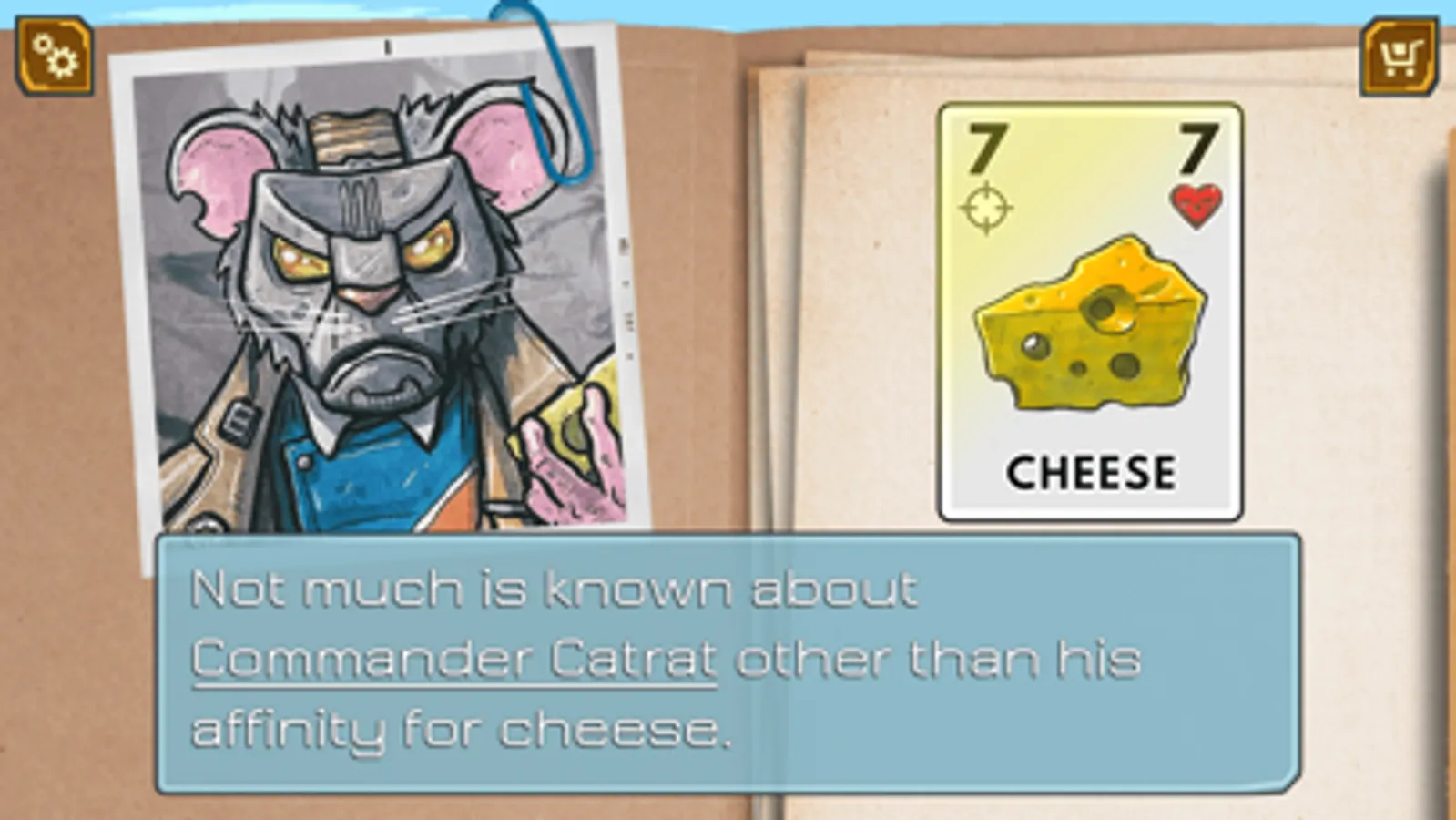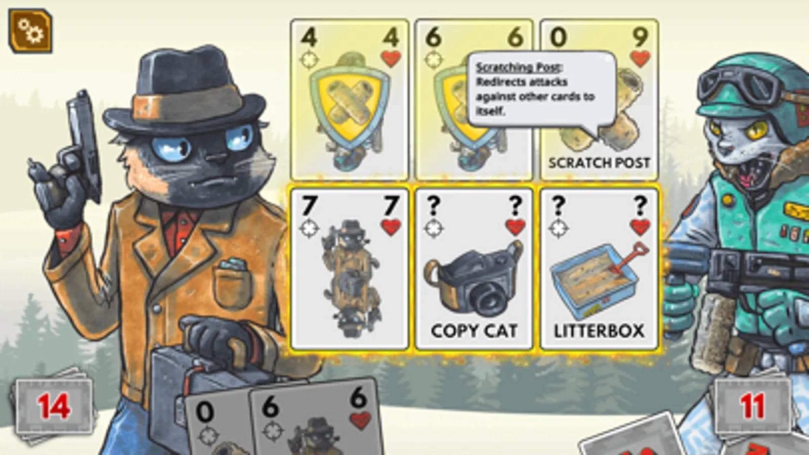 Meow Wars is a cat themed card battle game with easy to learn mechanics and charming hand drawn characters. Battle your way through each challenger to reach Commander Catrat and free Claw Mountain from his iron fisted grip. Each stage introduces a new cat and card ability in a compelling feline filled story. Challenge your friends to a PVP duel or test your might against a global audience.