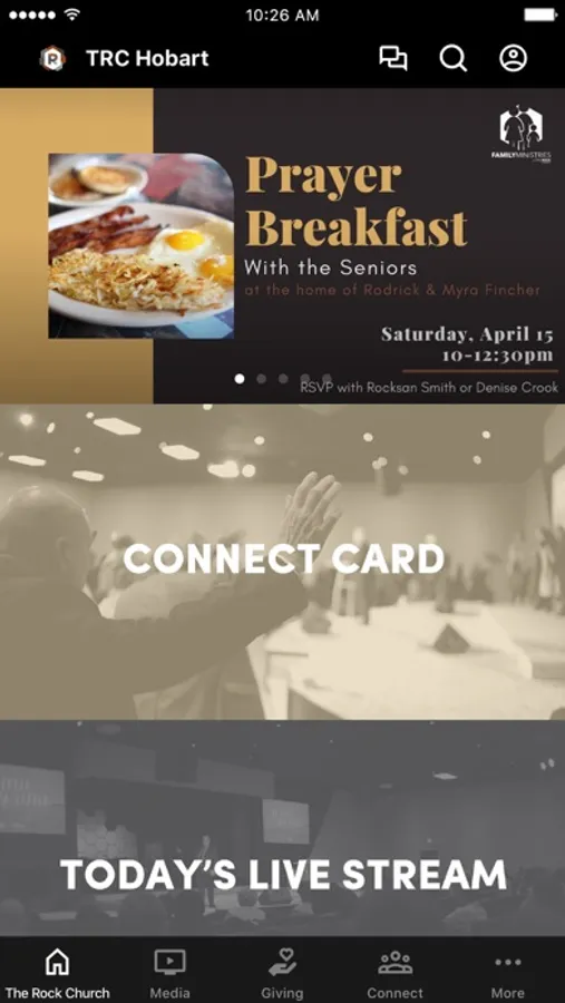 This app will help you stay connected with the day-to-day life of The Rock Church. With this app you can: watch or listen to past messages; stay up to date with push notifications; share your favorite messages via Twitter, Facebook, or email; and download messages for offline listening.