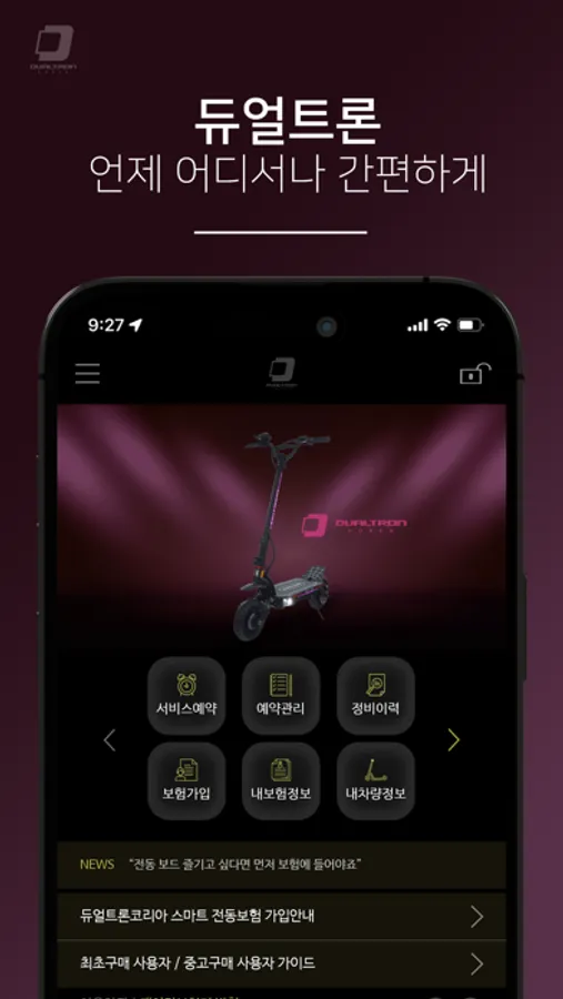 - 듀얼트론코리아 스마트 전동 보험을 손쉽게 가입 가능.(메리츠화재)