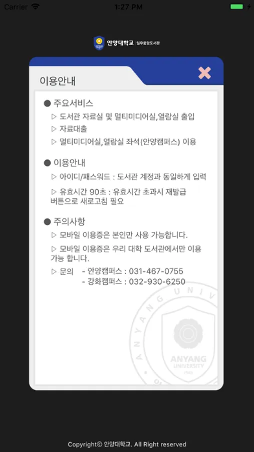 - 멀티미디어실, 열람실 좌석(안양캠퍼스)이용