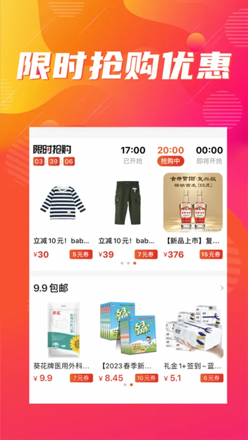 • 9.9包邮专场、限时秒杀等特色专区低价好物等你来抢!
