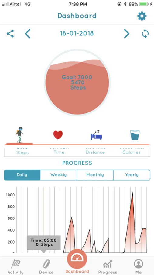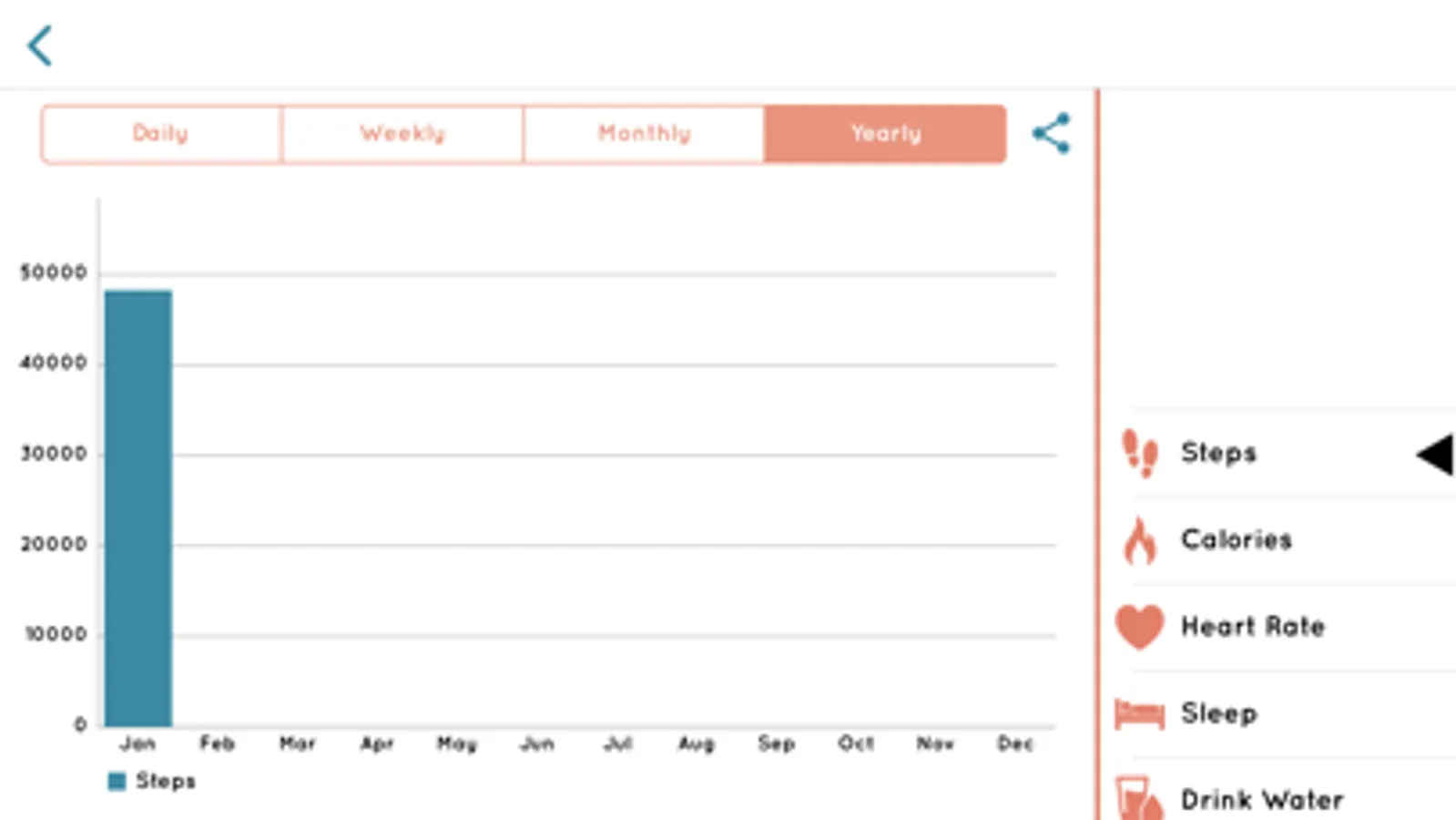 Track Daily goals and push them further over time. Tracks STEPS, DISTANCE and CALORIES BURNED as well as SPECIFIC WORKOUT TIME
