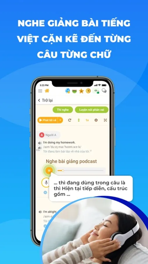 -Có bài giảng text và âm thanh (podcast) cho từng từ, từng cụm, từng câu để bạn có thể bấm nghe giảng không cần tốn công sức mà vẫn hiểu bài cặn kẽ đến từng câu từng chữ. Lang Kingdom là app học tiếng Anh online duy nhất có giảng bài và bài giảng thuộc thể loại podcast này