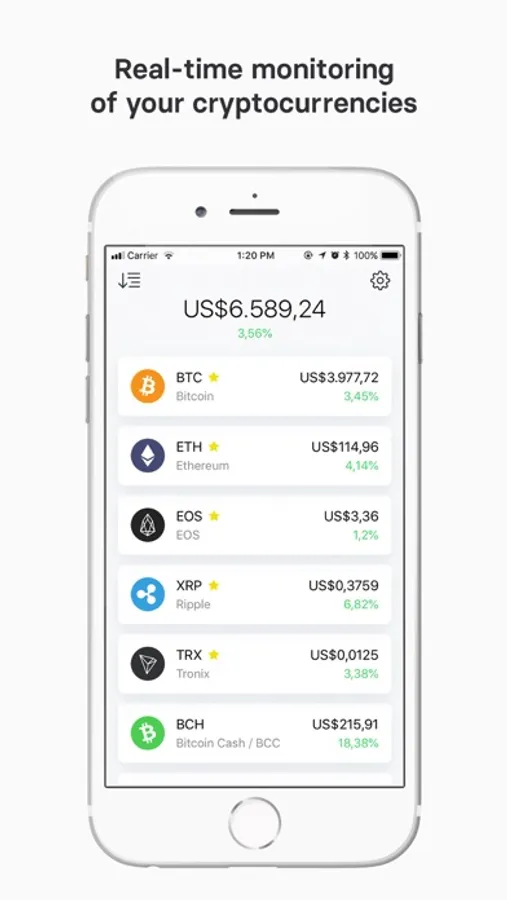 Choose your favorites cryptocurrencies and sort the main list to watch them as soon as you open the app.