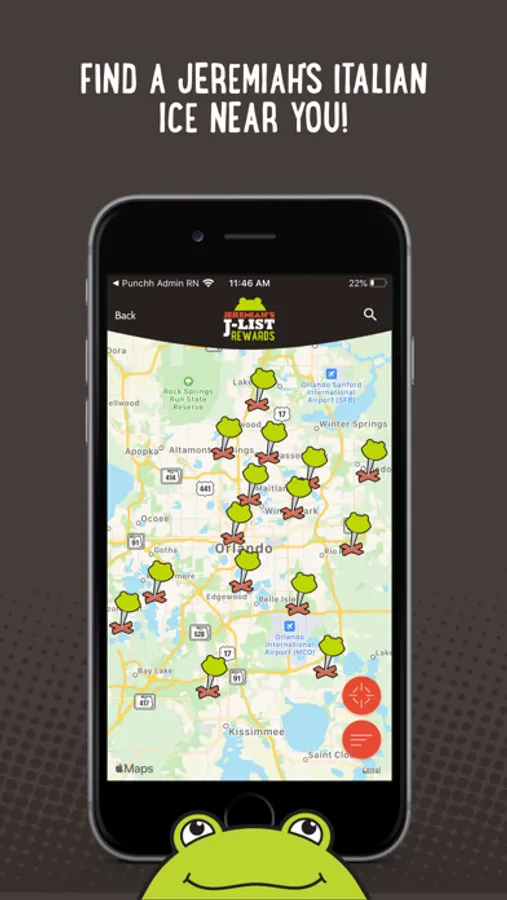 - Map view: Uses your phone’s GPS to find the nearest Jeremiah’s Italian Ice location.