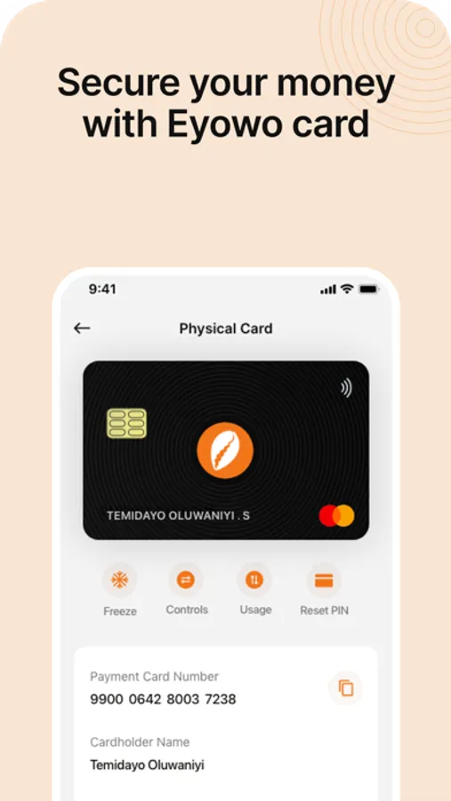 With Eyowo cards, we've removed all the information that fraudsters can use to steal your money. Your card information now lives in your app. This is the safest card in Nigeria.