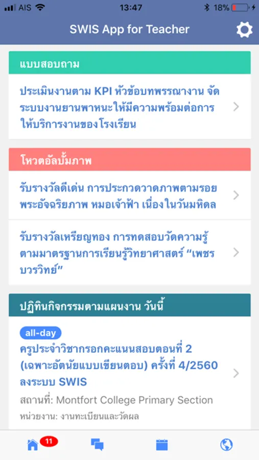 Application สำหรับครูและบุคลากร ของโรงเรียนที่ใช้ระบบ SWIS สำหรับการแจ้งเตือนต่างๆ จากระบบ เช่น แจ้งเตือนเอกสาร, การมาเรียนของนักเรียน, นักเรียนเจ็บป่วย ฯลฯ