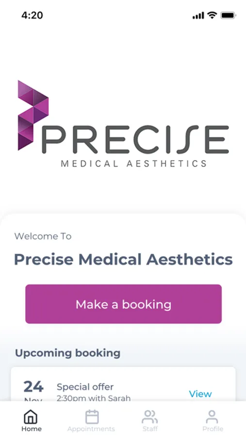 The Precise Medical Aesthetics app makes booking your appointments and managing your loyalty points even easier. You're just a few taps away from feeling good and looking great!