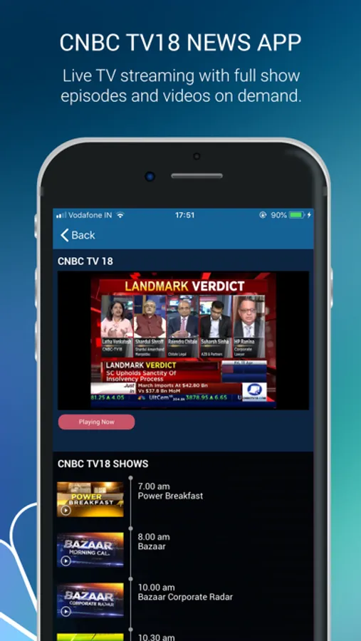 The app helps you benefit from the power of CNBCTV18, the undisputed leader of financial news in India, by the live streaming news, special shows and expert takes.