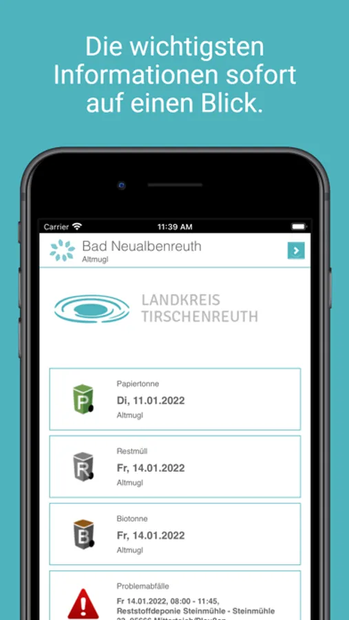 Bleiben Sie immer informiert - über Abfuhrtermine, Annahmestellen, Problemmüll und vieles mehr.
