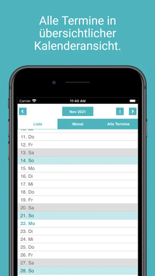 * Alle Termine in verschiedenen Kalenderansichten. Schafft Überblick in jeder Hinsicht!