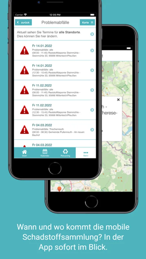 * Wann und wo kommt die mobile Schadstoffsammlung? In der App sofort im Blick.