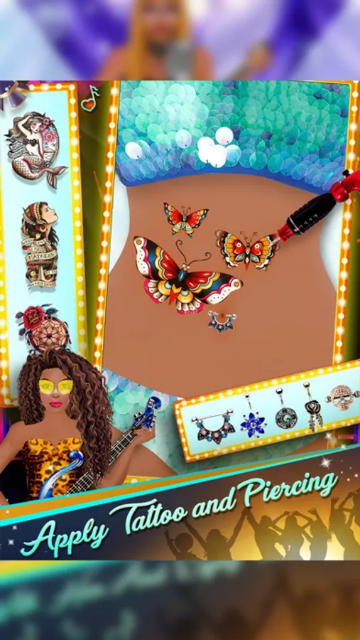 Tattoo and piercing are form of art! They make stars looks more stunning and gorgeous! We have provided bunch of beautiful tattoos and piercings!You can apply these tattoos anywhere on the arm, belly, back, neck or leg.Have fun applying them to make her ready for the concert!