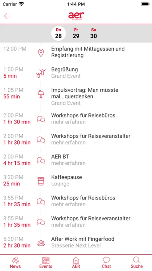 Die AER Community App bietet Mitgliedern eine Plattform zum Austausch, Zugriff auf aktuelle News und Angebote sowie die Möglichkeit, sich für Veranstaltungen anzumelden und wertvolle Zusatzinformationen rund um diese Events zu erhalten.