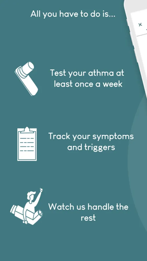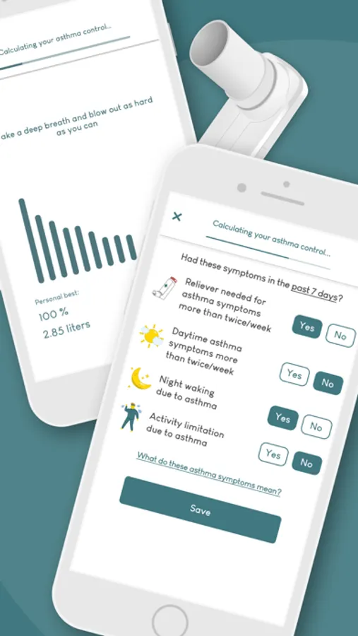 When you blow into the spirometer, your lung function is recorded in the app. AsthmaTuner measures a value called FEV1 and is the same used by your asthma specialist at evaluations. Answer four questions about your symptoms and receive an evaluation whenever and wherever you want.